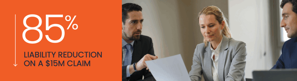 This strategy positioned the client for successful mediation, ultimately resolving the claim for $2.25 million, an 85% reduction from the original demand and 25% below the client’s authorized settlement authority.